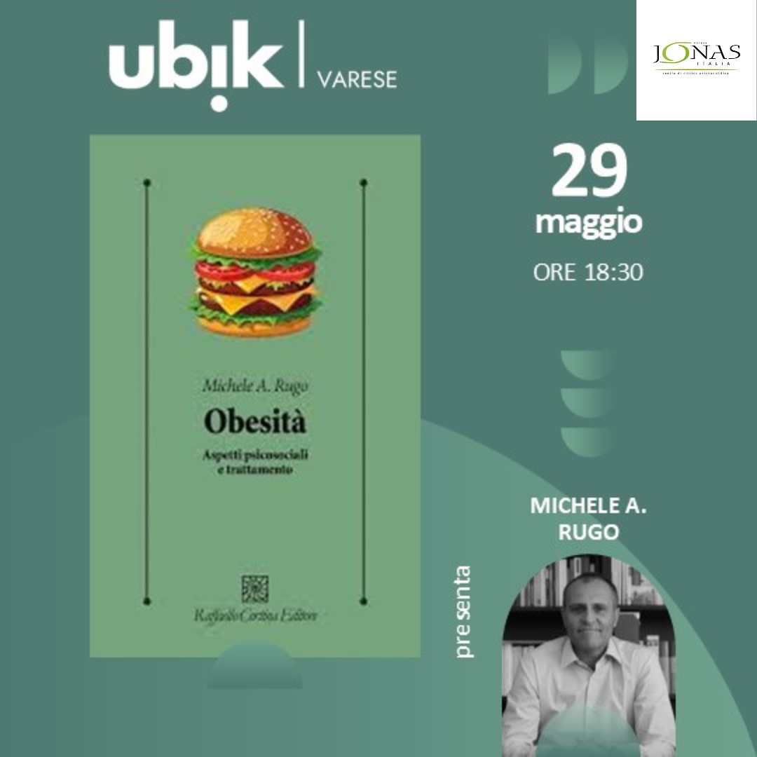 Giovedì 29 maggio alle 18:30 presso la libreria Ubik di Varese (Piazza Podestà), Michele A. Rugo psichiatra, psicoterapeuta e filosofo presenterà il suo testo “Obesità. Aspetti psicosociali e trattamento” (Raffaello Cortina Editore, 2025).